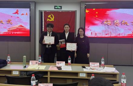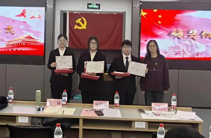 本次大赛决赛共产生一等奖2个,二等奖3个,三等奖3个。颁奖环节中,调教 党委副书记陈博老师、调教 关工委邢朝晖老师以及马克思主义学院学工办主任刘慧敏老师分别为获奖学生颁奖。