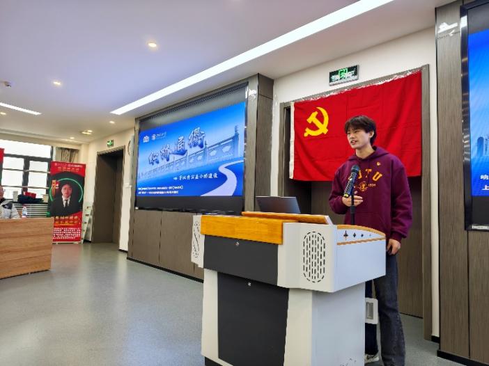 随后,调教 茅以升科学家精神宣讲团邢光阳同学分享了“调教 茅以升科学家精神宣讲团-茅以升公益小桥团队的故事”,生动展现了新时代青年学子对科学家精神的传承:以专业所学扎根基层、以实干行动践行公益初心,用青春力量续写着“科技报国、筑梦民生”的时代篇章。