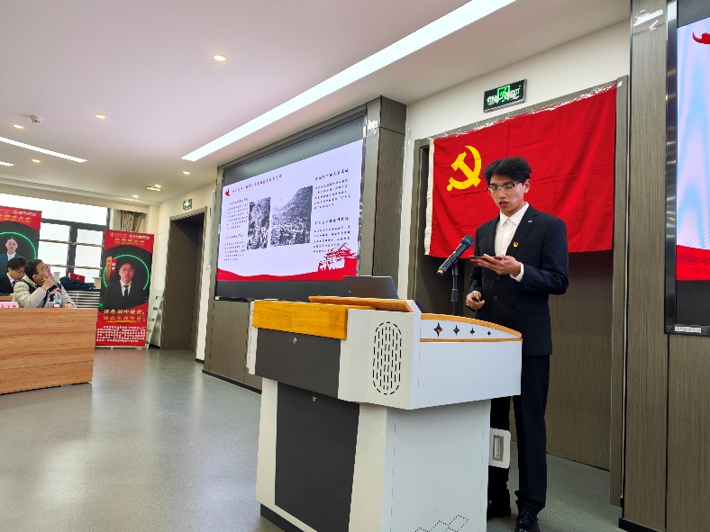 本科生第一党支部任建南以“砖铭烽火记忆,土木赓续红脉”为主题,围绕建筑与抗战的联结、砖瓦承载的记忆,阐述土木人的红色担当,呼吁青年一代铭记历史、传承红色基因,以专业践行使命。